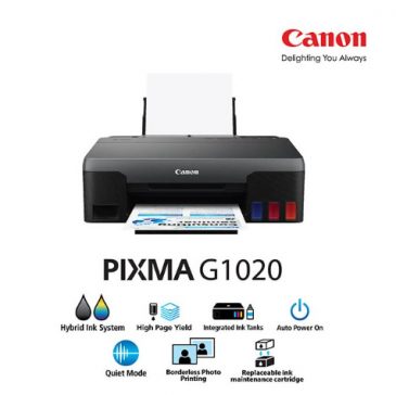 Printer dengan sistem Ink Tank / tangki tinta isi ulang ini menghadirkan teknologi terbaru untuk mendukung kebutuhan cetak dalam jumlah besar, cepat dan hemat. Generasi terbaru PIXMA G Series ini menjadi standar baru printer Ink Tank karena pengguna tidak perlu repot lagi untuk melakukan perawatan berkala ke service center. PIXMA G1020 dirancang khusus sebagai opsi bagi pengguna yang lebih sering melakukan aktivitas cetak saja, seperti pelajar, mahasiswa dan penggunaan untuk kebutuhan di rumah.